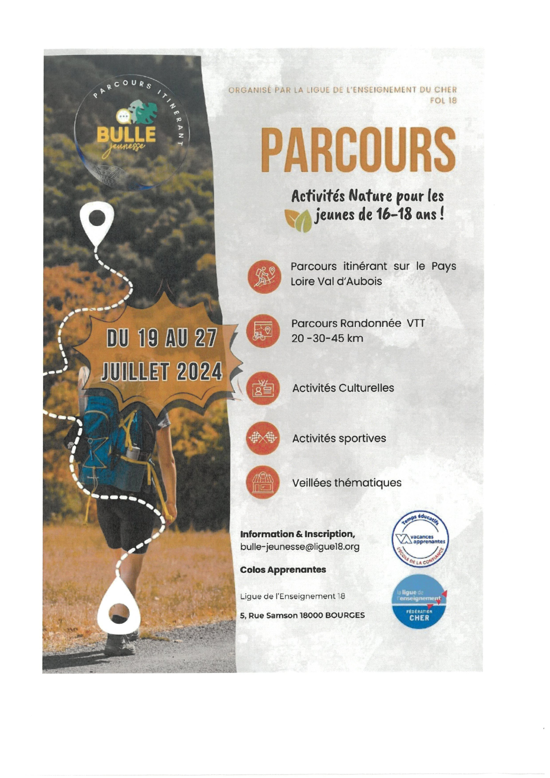 BULLE JEUNESSE - PARCOURS ITINERANTS 16-18 ANS ETE 2024